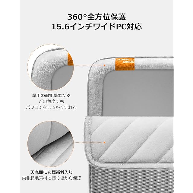 商品名:tomtoc 360°保護 15.6 16インチ パソコンケース 15.6~16型 Dell NEC Lavie 富士通 ASUS Lenovo HP dynabook対応 全方位耐衝撃 ノートPCケース スリーブ ラップトップインナーバッグ 軽量 撥水加工 グレー