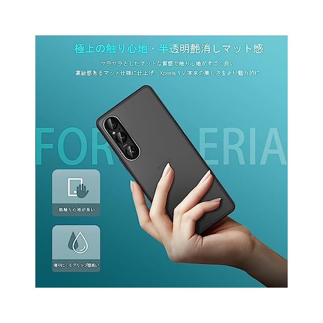 【魅力的な外観と超高耐衝撃性】 Xperia 1 V [SO-51D|SOG10] 用ケース。高級感溢れるマット感の半透明デザインなので、手にした瞬間にその美しさに目を奪われます。サラサラとした極上の触り心地で、一度手にしたら手放せなくなる。更に、磨りガラスのような上品な透け感、Xperia1vの美しさをより一層引き出します。世界で最も権威のある米国国防総省の耐衝撃試験「MIL-STD-810G」に認証済み、耐衝撃性能は20倍アップ。圧倒的な耐衝撃性を誇り、エクスペリア1vを全方向からしっかりと保護できす。