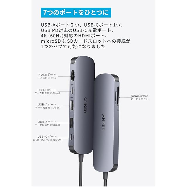 Anker Nano USB-C ハブ(7-in-1, 4K, HDMI) HDMIポート4K 60Hz対応、5Gbps 高速データ転送 USB-Cポート、USB-Aポート搭載 | TREND DESIGN 家電専門店