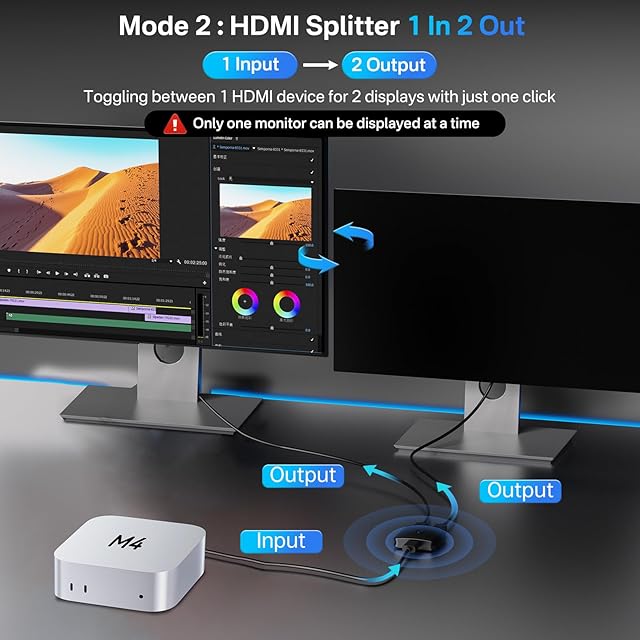 【双方向Hdmi 2.1スイッチ】Hdmi光スプリッタを接続させるのに役立つん2 Hdmiソース1 Hdmi表示(2 1アウト)にまたは反対側でHdmiソースが両者の切替に表示(2アウト)1戸、は場所をとり最小限机の上に置き、スプリアス複数のHdmiケーブルおよびデバイスのものを排除した。✅同時に2画面をサポートしていません。