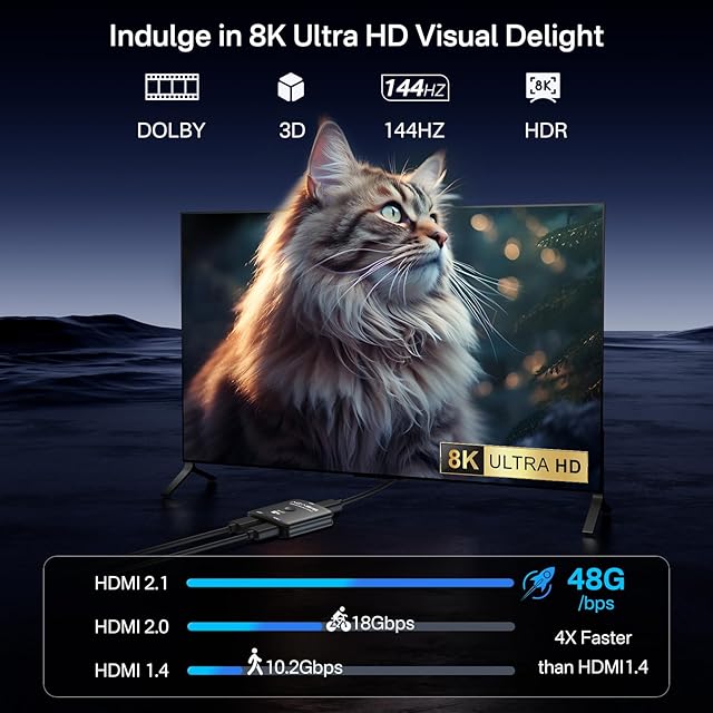 【迅速で確実なデータ転送】最大48 gbpsの高精細伝送速度を実現し、最適な帯域幅利用を実現します。✅8 kやその他の高解像度、高リフレッシュレートのディスプレイを利用するためには、hdmi 2.1ケーブルがデバイス接続に必要で、比類のないオーディオとビデオ信号の伝送をします。