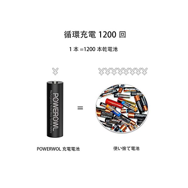 【経済性 耐久性】独特の低分解技術は、何度も循環使用することができ、1200回の使用が可能となる。1つのニッケル水素の充電プールの作用と1200節の普通の乾電池の作用と同じですが、しかし、経済的で耐久性。優れた自放電抑制技術は、通常3年後には80 %以上の電気量を保存することができる