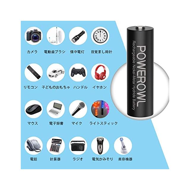 商品名:POWEROWL 単3形充電式電池、2800mAh 大容量電池 1.2V ニッケル水素16個パック(約1200回循環使用可能)