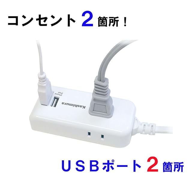 商品名:カシムラ(Kashimura) 国内・海外兼用 2口電源タップ Aタイプ 2USB 2.1A 1m NTI-174
