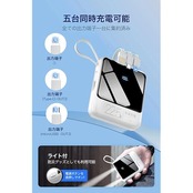 【ケーブル内蔵 5台同時充電可能】iOS、Android機種に適用する3規格出力ケーブルが内蔵され、ケーブルを持ち運ぶ必要がなく、接続したデバイスに応じた最適な電流で充電できます。さらに、Type-C入出力ポート及びUSB-A出力ポートがあり、最大5台のデバイスを同時に充電可能。旅行、出張時に家族や友人とシェアでき、複数のスマホやデバイスの充電が必要な時でもこの一台で同時にまかなえて、停電、台風、地震など非常時の電源確保にもぴったりなスマホ充電器です。