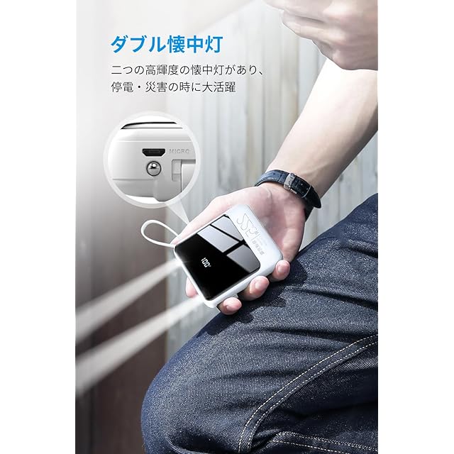 大容量・小型・ケーブル一体型モバイルバッテリー