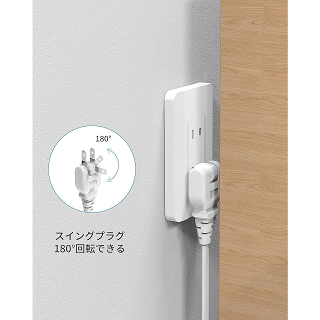 【便利】AC差込口の間の距離は適当で、お互いに干渉しません。スイングプラグはどこでも配線しやすいです。壁掛け用フック穴と滑り止めが付いており、使用がより便利です。