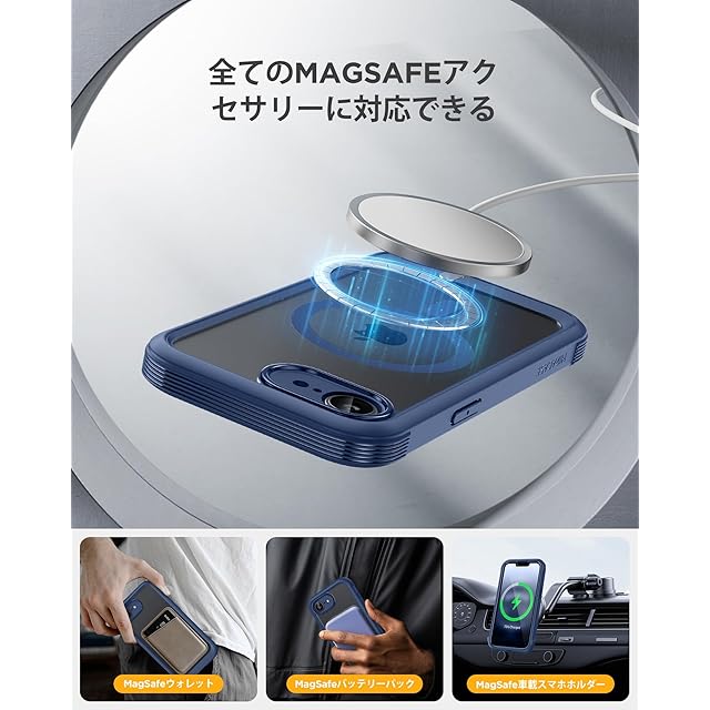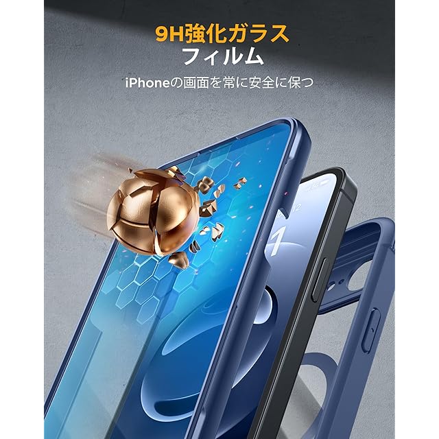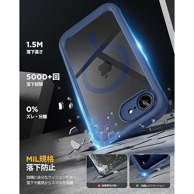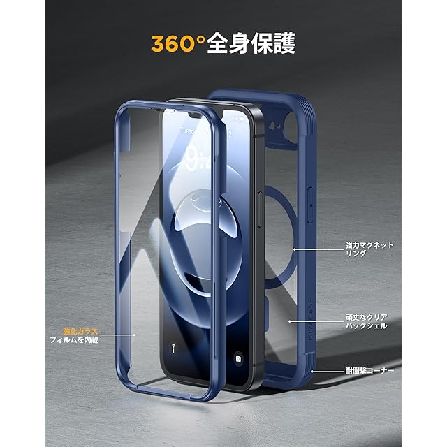商品名:Miracase iPhone 16E ケース MagSafe対応 あいふおん16e スマホケース 2025 9H強化ガラス 6.1インチ フルカバー 360°全身保護 ワイヤレス充電対応 ダークブルー