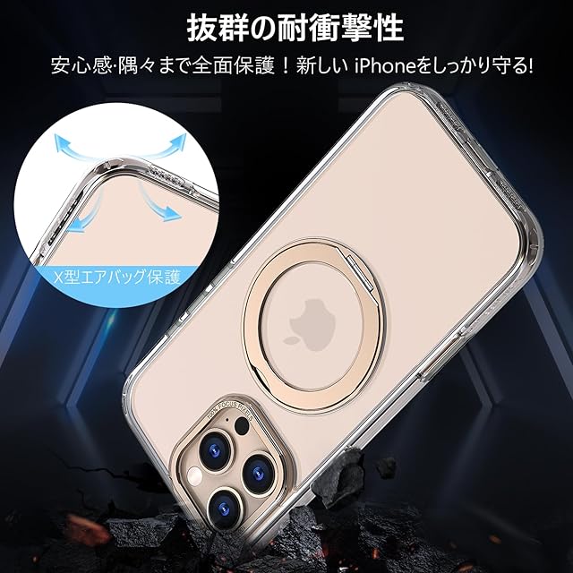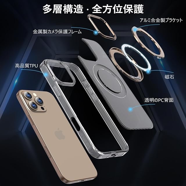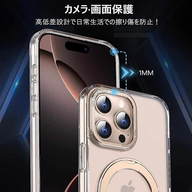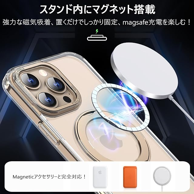 KWATUNG ケース iphone 16 pro max 用 ケース magsafe対応 ワイヤレス充電 アイホン16pro max 用ケース 落下防止 耐衝撃 いphone16pro max 用 ケース 360°回転スタンド 縦横両対応 iphone16プロマックス 用ケース マグネット搭載 防指紋 米軍MIL規格 クリア 6.9インチ 透明+デザートチタニウム | TREND DESIGN 家電専門店