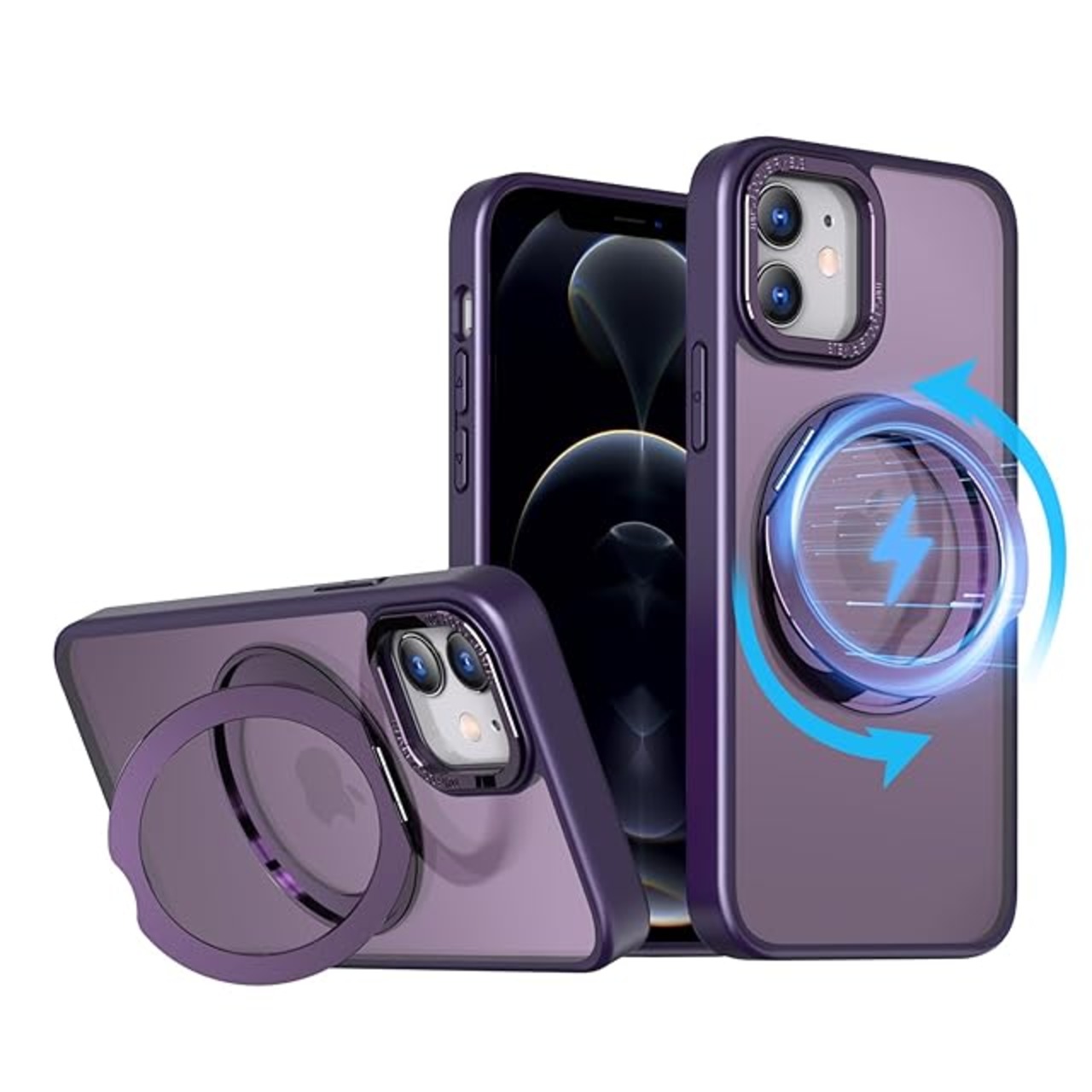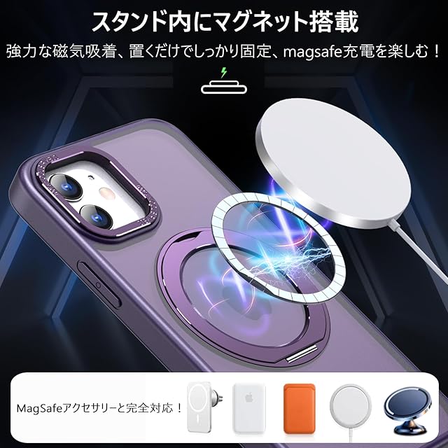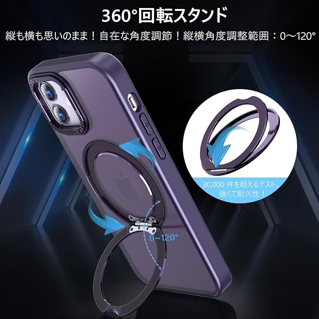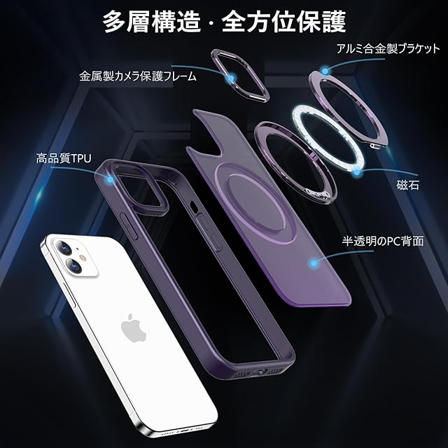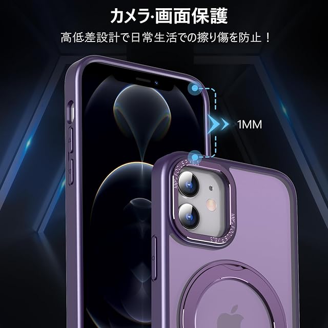 KWATUNG iPhone12 用 ケース iPhone 12 Pro 用 ケース magsafe対応 ワイヤレス充電 耐衝撃 いphone12 用ケース 360°回転スタンド 縦横両対応 アイフォン12用ケース マグネット搭載 アイフォン12pro 用ケース 防指紋 米軍MIL規格 スマホケース iphone12/iPhone12 Pro 用 6.1インチ 半透明 マット感 深い紫 | TREND DESIGN 家電専門店
