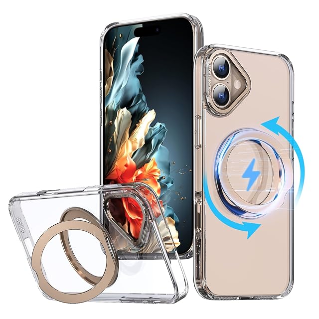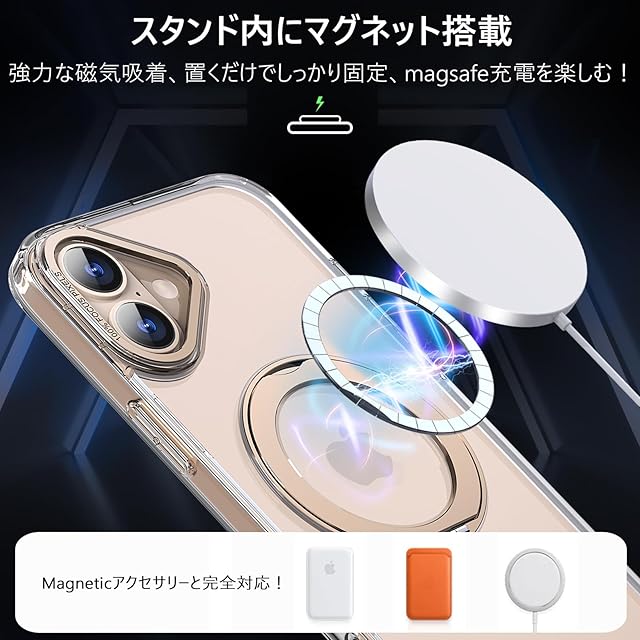 KWATUNG ケース iphone16用ケース magsafe対応 ワイヤレス充電 アイホン16用ケース 耐衝撃 iphone 16 用 ケース 360°回転スタンド 縦横両対応 スマホケース iphone 16 用 マグセーフ リング マグネット搭載 アイフォン16 用ケース 防指紋 米軍MIL規格 クリア iphone16 用カバー 6.1インチ 透明+デザートチタニウム | TREND DESIGN 家電専門店