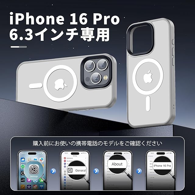 iPhone 16 Pro 用 ケース MagSafe対応 ワイヤレス充電 磁気ケース 耐衝撃性 米軍MIL規格の保護 傷に強い背面 6.3インチ