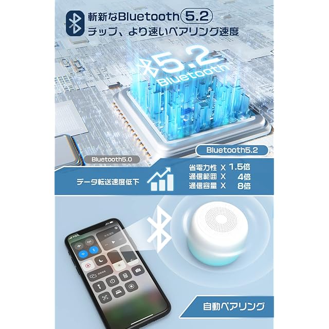 【IPX7防水・優秀な互換性】環境性能と運動性能を両立して、コスパ重視の防水Bluetoothスピーカーと言えます。このbluetooth スピーカーはIPX7レベルの防水性能が持って、お風呂スピーカーとしても最適です。Bluetooth5.2を搭載しております、Android、iPhone、iPad、PCそれとBluetooth機能あるのテレビなど、Bluetooth機能を対応できるデバイスは全て使用可能です。