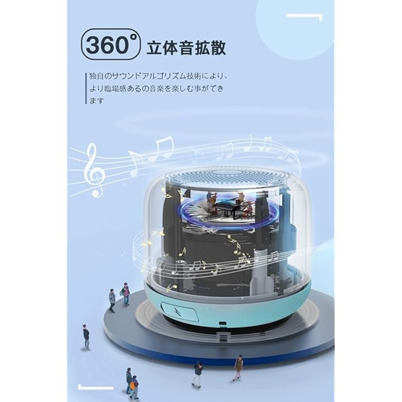 【360°全方位サウンド】このbluetoothスピーカーは360°全方位に音を拡散できるタイプですので、家でもアウトドアでも音割れなく、バランスの良い音をお楽しみいただけます。臨場感のあふれる音質を実現し、しっかり音に包まれる感覚を味わえます。360°タイプは、本体を中心として全方位に音を届けるため、設置場所を選びません。