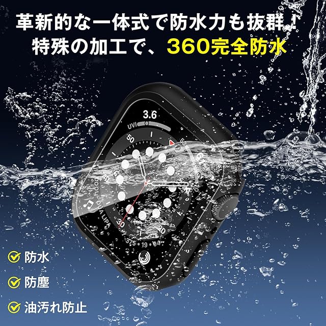 【防水·防塵】Apple Watchケース特殊加工による防水機能により、シーリングリング内蔵したApple Watchケース、Apple Watchの画面にぴったりとフィットし、水の浸入を防ぎます。シャワー、手洗い、発汗、運動、雨など、日常の使用に適しています!※【重要】アップルウォッチ本来の防水性能を向上させるものではありません。裏面の接着剤に密着させて防水効果を高めるために、画面の周りの端に沿って、指の腹で繰り返して押さえてください。