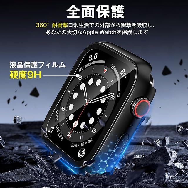 【全面保護·9Hの硬度】強化ガラスフィルムとPCフレームまた防水リングの三重構造仕組みを採用し、最高レベルの9H硬度、 盛り上がったエッジガードが、スクリーンを硬い面にぶつけないように保護します、Apple Watch保護機能を更にアップ!