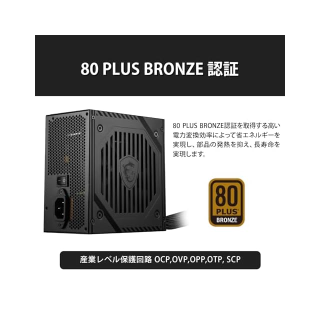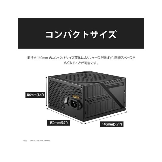 商品名:MSI MAG A650BNL 80 PLUS BRONZE認証 650W 奥行140mm コンパクトサイズ PC電源ユニット PS1406