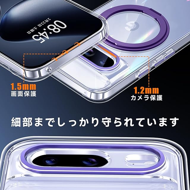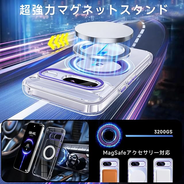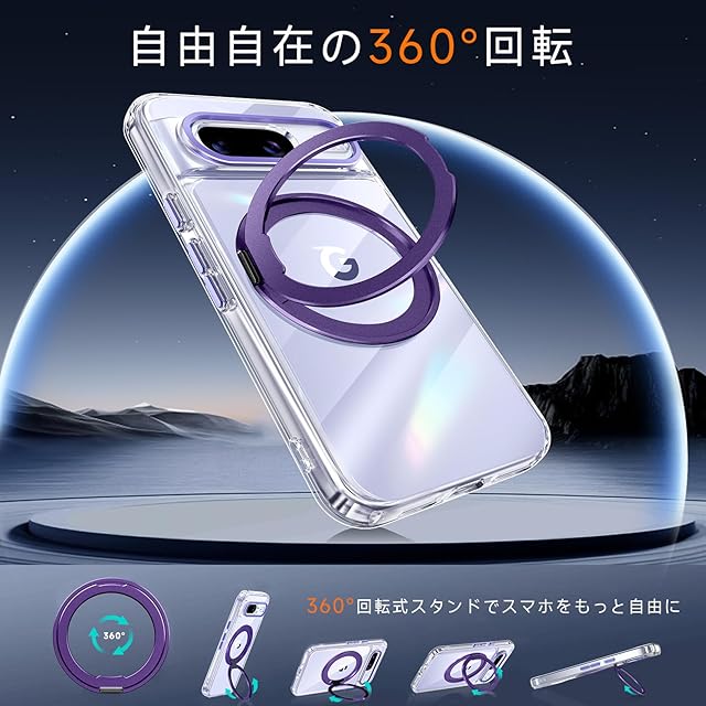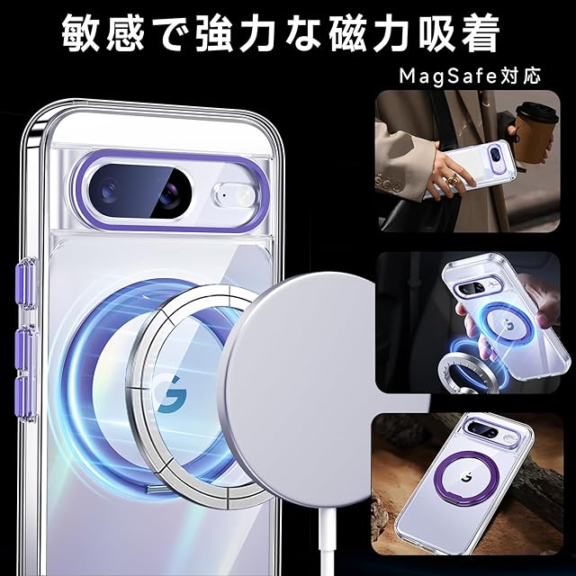 商品名:【米軍MIL規格・Magsafe対応】Google Pixel 8 用 ケース MagSafe対応 リング360°回転スタンド機能 縦横両対応 透明 黄ばみ防止 ワイヤレス充電 ピクセル8 スマホケース レンズ保護 耐衝撃 携帯カバー グーグルピクセル8 カバー 6.2 インチ マグネット搭載 車載ホルダー マグセーフ対応 おしゃれ (クリアパープル)