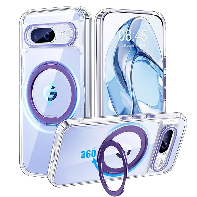 【米軍MIL規格・Magsafe対応】Google Pixel 8 用 ケース MagSafe対応 リング360°回転スタンド機能 縦横両対応 透明 黄ばみ防止 ワイヤレス充電 ピクセル8 スマホケース レンズ保護 耐衝撃 携帯カバー グーグルピクセル8 カバー 6.2 インチ マグネット搭載 車載ホルダー マグセーフ対応 おしゃれ (クリアパープル) | TREND DESIGN 家電専門店