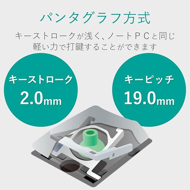 キータイプにはノートパソコンのキーボードと同じ軽い力で打鍵できる「パンタグラフ方式」を採用しています。