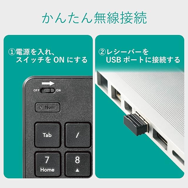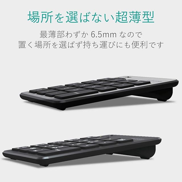最薄部がわずか6.5mmの薄型設計で、場所を選ばずに使用できる無線薄型テンキーパッドです。