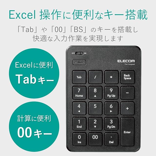 商品名:エレコム USB-A テンキー ワイヤレス(レシーバー付属) パンタグラフ 薄型 ブラック TK-TDP019BK
