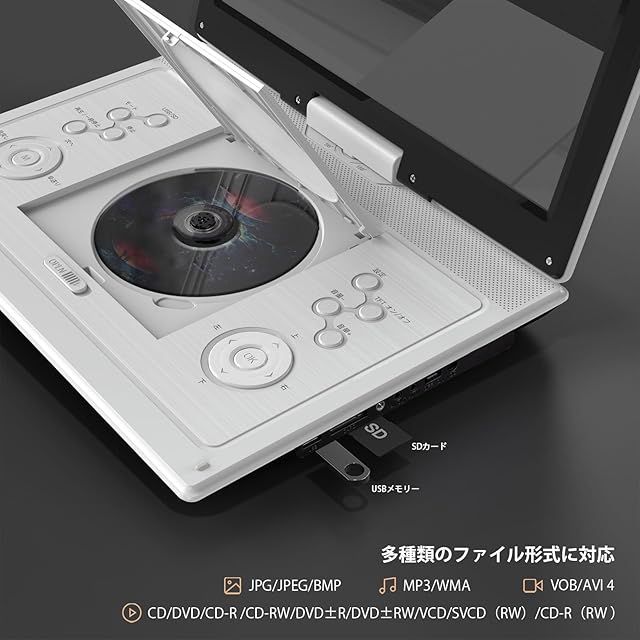 【CPRM対応・多彩なファイル形式】CPRMにも対応し、地デジ放送の番組を録画したDVDを再生可能です。このDVDプレーヤーポータブルはCD、DVD、CD-R / RW、DVD±R、DVD±RW、VCD、SVCD(RW)、CD-R(RW )などのフォーマットに対応できます。SDカードやUSBメモリーに保存されたMP3、WMA、JPEG、VOB、AVI 4などファイルも再生できます。できるだけ多くの選択肢を提供します!