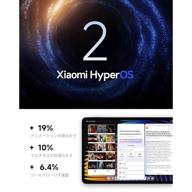 【Xiaomi HyperAI】Xiaomi Pad 7は、Snapdragon 7+ Gen 3 Mobile Platformを搭載し、学習とエンターテインメントのバランスを求める人のために設計されています。外国語のリアルタイム翻訳や要約といった日常の利用のみならず、手書きの数式を認識して計算するAI電卓や自分で描いたイラストをもとに生成するAIアートのようなタブレットに最適化したAI機能もご活用いただけます。