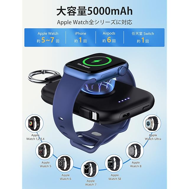 【PSE認証&一年】日本国内のPSE監査基準をサポートし、優れたセキュリティを備えています。充電保護/蓄電保護/高温保護/過電圧保護などの機能を備えており、お客様の安全体験を第一に考えています。//安心:ご購入日より一年間。何がご質問やご要望がございましたら、お気軽に弊社のメールアドレスまでご連絡お願い致します。【最新watchOS対応】 対応機種:⌚Apple Watch Ultra2/Ultra/9/8/7/6/SE/5/4/3全シリーズ Apple製品:iPhone/iPad/Airpods全シリーズ対応 Android/任天堂switchに対応