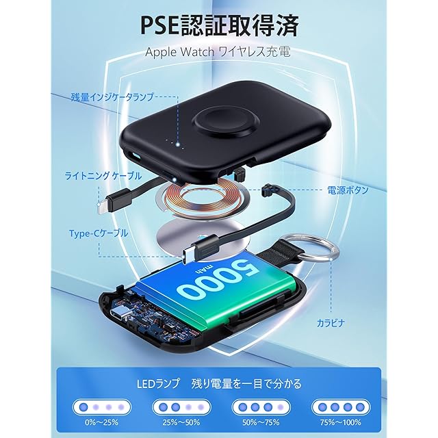 モバイルバッテリー 軽量 小型 5000mAh apple watch 充電器 アップルウォッチ対応