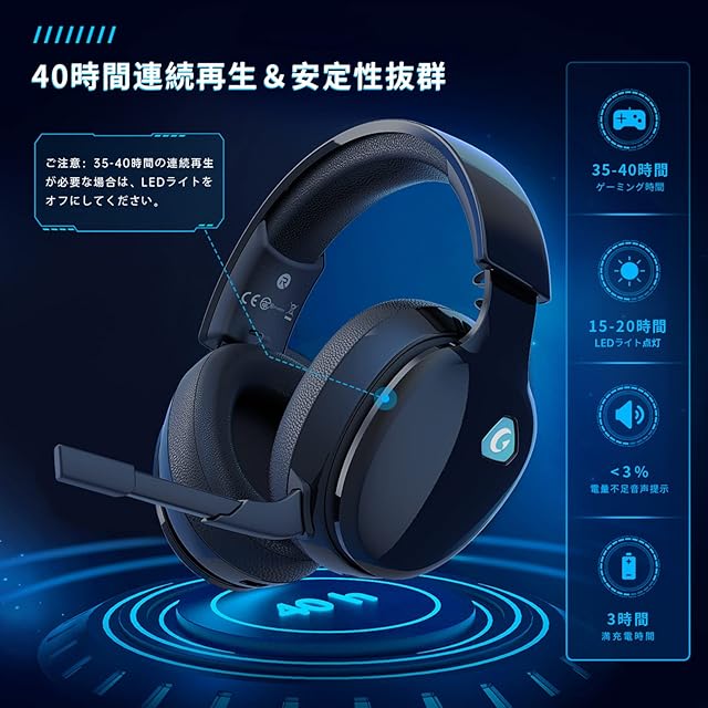 【長寿命バッテリー&40時間連続再生】 Gvyugke ps5 ヘッドセットはゲーミングまたは音楽のリスニングであっても、フル充電後40時間ワイヤレス体験を楽しむことができます。 ご注意:ヘッドセットのLEDライトが点灯している場合は15時間連続使用可能です。 充電のためにゲームを中断する必要がなく、一日中ゲームや友達との会話、音楽を楽しむことができるワイヤレスゲーミングヘッドセットです。 【着脱式単一指向性マイク&優れたマイク音質】 こちらのマイク付きヘッドホンはアクティブノイズキャンセリング機能を備えた、単一指向性マイクにより、周囲のノイズを低減しクリアなコミュニケーションを実現します。 良い通話体験や騒音抑制の高集音マイクは全方向調節でき、音を360度から拾えます。もっともよい通話効果を果たせます。 チームメンバー間の交流はよりスムースになります。 ワイヤレス ヘッドセット本体でのマイクボタンを押してマイクミュート/ミュート解除を簡単に操作できます。