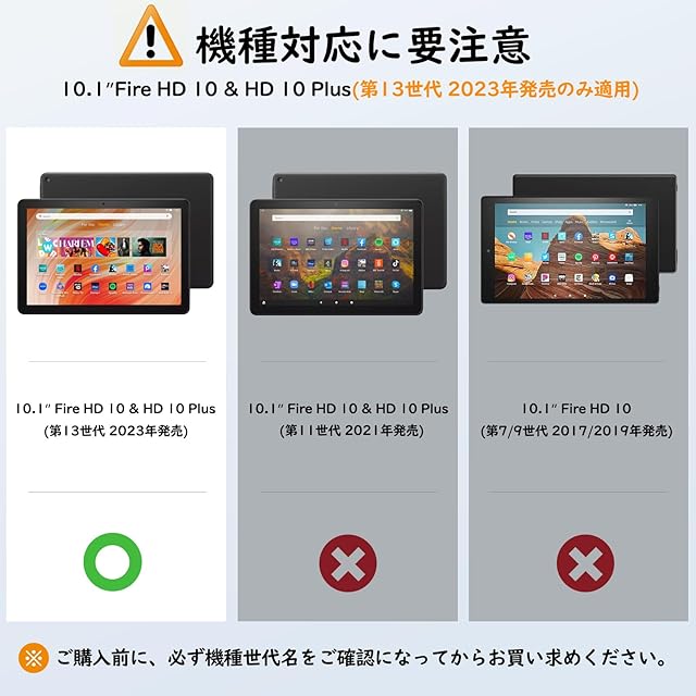 「適用機種」 2023年発売のFire HD 10 第13世代新型のみに対応できる手帳式のケースです。薄型かつ軽量化にした設計で、取り扱いやすくFireにピッタリフィットできる見栄えも保護力も両立させたスマートケースです。ご注意:第13世代以外の機種に対応できません。ご購入になる前に、機種をしっかりと確認してください。