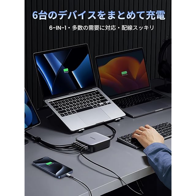 商品名:UGREEN Nexode 200W 充電器 6ポート 卓上多ポート急速充電器 【USB-C×4 USB-A×2 ダブルGaNIII(窒化ガリウム)採用 全ポートPD3.0対応 単ポート100W高出力 PSE技術基準適合】 ノートPC三台急速充電対応 iPhone16-8/Galaxy S23-10シリーズ Android Xperia/AQUOS/Macbook M4対応 CD271