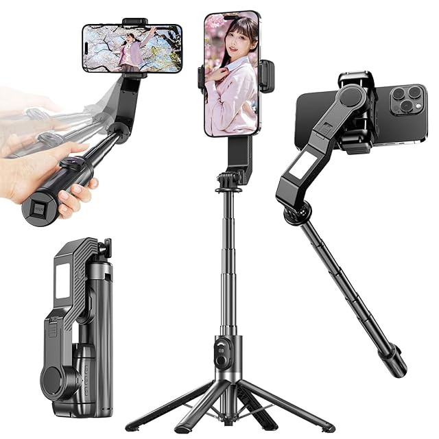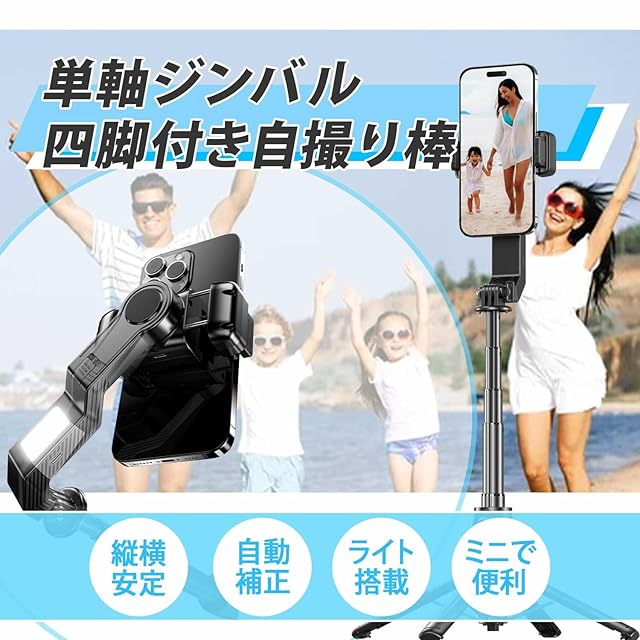 手ブレ防止自撮り棒 ジンバル三脚スリーインワン一体三役【2025最新】スマホジンバル【Bluetoothリモコン付き】スタビライザー 片手持ち単軸スタビライザー 自撮り棒 多機能 安定撮影 スマホ三脚 手ブレ防止 折畳み式 超軽量 スマホ 携帯電話 手持ちジンバル iPhone/Android対応 ハンディ USB充電 角度調節 初心者・プロ対応