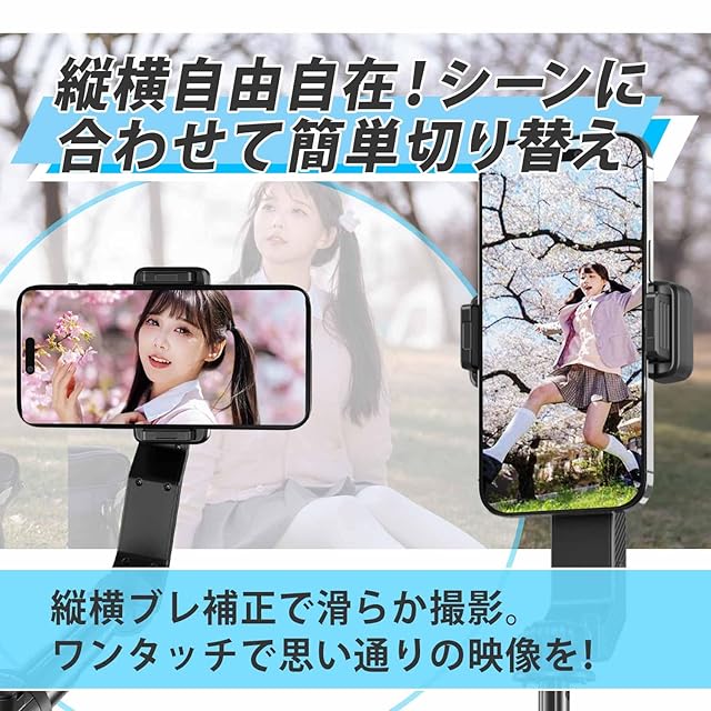 商品名:手ブレ防止自撮り棒 ジンバル三脚スリーインワン一体三役【2025最新】スマホジンバル【Bluetoothリモコン付き】スタビライザー 片手持ち単軸スタビライザー 自撮り棒 多機能 安定撮影 スマホ三脚 手ブレ防止 折畳み式 超軽量 スマホ 携帯電話 手持ちジンバル iPhone/Android対応 ハンディ USB充電 角度調節 初心者・プロ対応