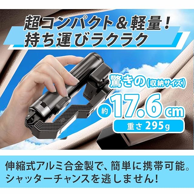 【Bluetoothリモコン付きで遠隔操作可能】一体型自立式の自撮り棒は、Bluetoothリモコンと三脚が一体化した高級設計です。専用アプリのインストールは不要で、スマホとペアリングするだけですぐに使用可能。約10m離れた場所からでも撮影できるため、集合写真や自撮り時の手ブレを抑えられます。Android 4.2.2・iOS 5.0以上のスマホ(幅6.2cm~9cm、最大積載量300g)に対応しています。