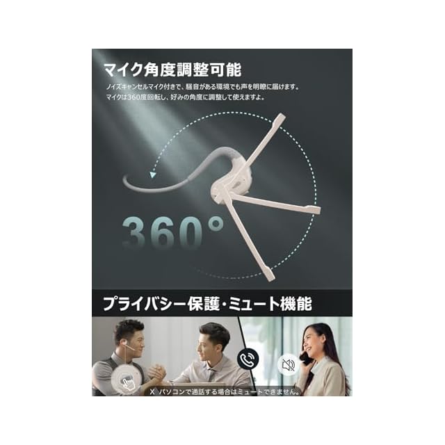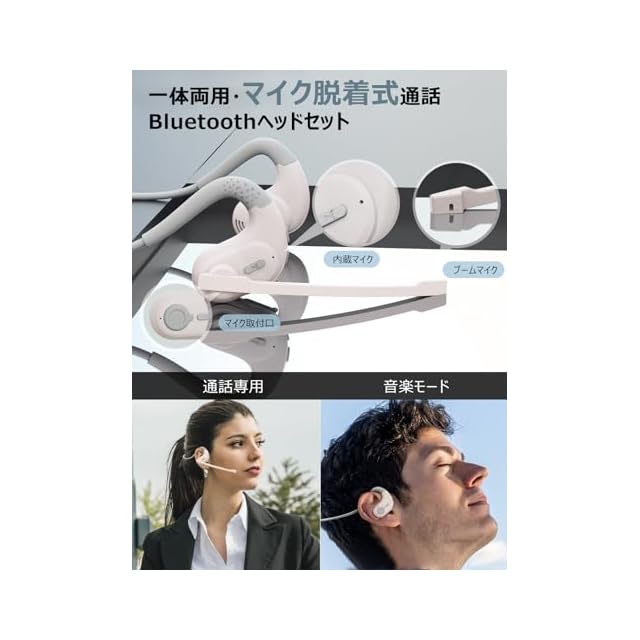 商品名:Bluetoothヘッドセット 【2025業界新設計】 マイク脱着式 Earaku(イアラク) MicCuff G9 一体両用 通話用イヤホン ヘッドセット マイク付き 両耳 耳掛け 空気伝導 Bluetooth5.3 EDR AAC対応 ミュート機能 2台同時接続 ENCノイズキャンセリング type-c充電 ハンズフリー通話 在宅勤務/運転/オンライン会議/テレワーク用 ホワイト&グレー