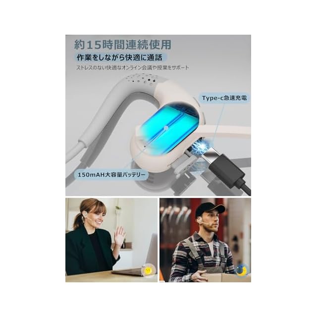 【Type-C急速充電/幅広い交換性】Tpye-C急速充電、150mAH大容量バッテリーで作業をしながら快適に通話、約15時間連続で使用できます。ストレスのない快適なオンライン会議や授業などをサポートします。幅広い交換性でSony Xpeira/Apple IOS/Android/Windows/MacOS/HUAWEI/Nexus/Asus/Galaxy/Auガラケー/OPPO/docomo系などのbluetooth搭載デバイスに対応します。弊社商品はすべて一年付、万がー製品に初期不良があった場合、迅速に交換もしくは返品/返金の対応を承らせていただきます。また、こ不明な点やお気付きの点がごぎいましたら、お気軽に「アカウントサービス」>「注文履歴」>「販売元」>「質問する」までご連絡、ご相談ください。ご注意:本製品をご利用するには、別途ACアタブターをご購入が必要です。必ずPSEマークの取得した正規メーカー品をご購入ください。また、充電中のご利用は禁止です。