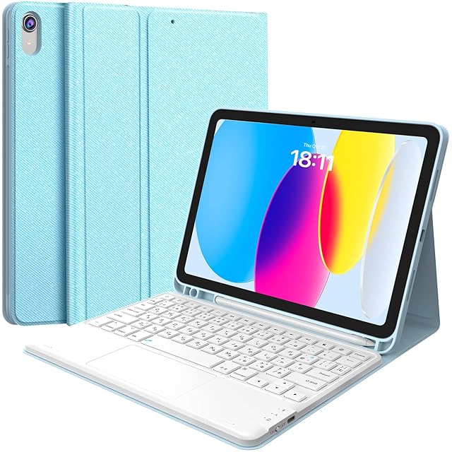 Earto for iPad 第10世代 キーボード ipad 2022モデル 10.9インチ タッチパッド付き JIS基準日本語配列 2台デバイスマルチペアリング ipad 10世代 キーボード 脱着式 多角度調整 ペンシルホルダー付き スマート軽量 薄型 type-c充電式 マグネット付き A2696/A2757/A2777対応 ブルー | TREND DESIGN 家電専門店