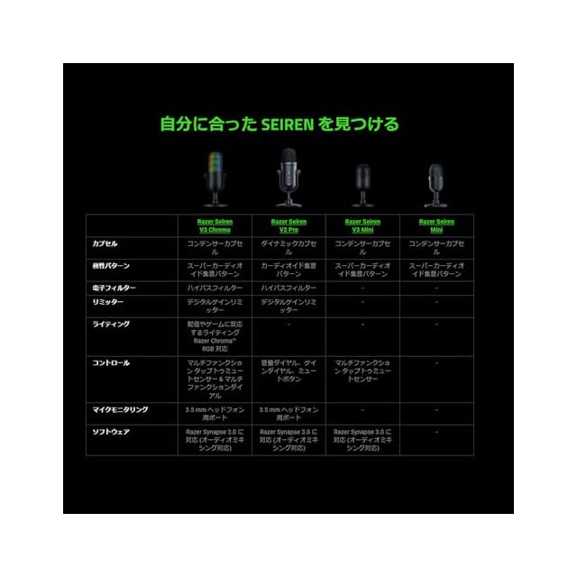Razer レイザー Seiren V3 Mini コンデンサーマイク 超コンパクト設計 タップ式ミュートセンサー ゲーミングマイク USB マイク 配信 セイレーン ブイスリー ミニ【日本正規代理店品】 | TREND DESIGN 家電専門店