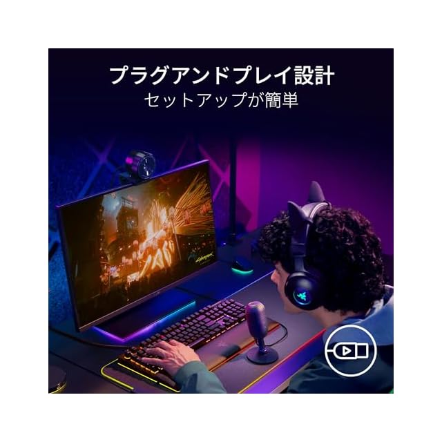 【タップトゥミュートセンサーと LED インジケーター】ゲームやチャット、ストリーミングなどでの使用時に、マイク上部をタップするだけで集音を瞬時に停止可能。マイクがオンになっているかどうかは、LED ステータスインジケーターで一目でわかります。
