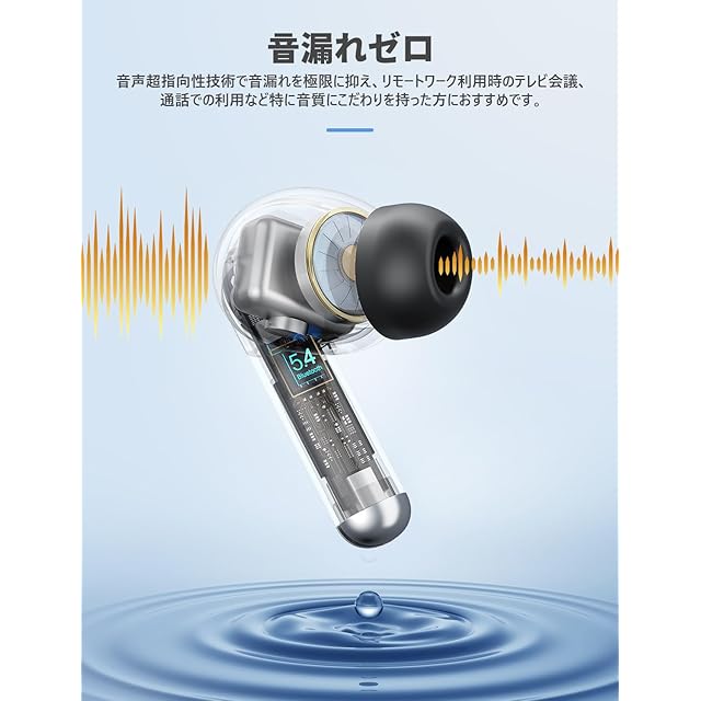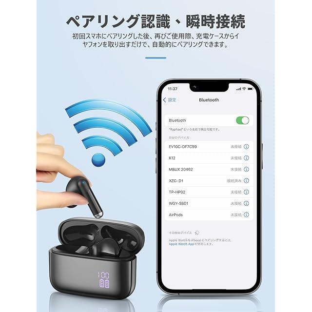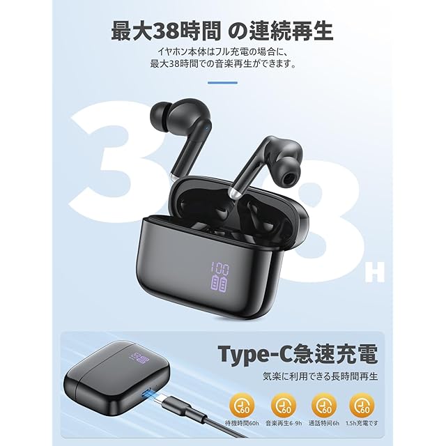 商品名:イヤホン bluetooth ワイヤレスイヤホン 38時間の再生時間 Bluetooth5.4技術 LEDディスプレイ表示 小型/軽量 IPX7防水 ブルートゥース 接続瞬時 Hi-Fi ブルートゥースイヤホン Type-C 急速充電 ぶるーとぅーすイヤホン iPhone/Android/Pad適用 スポーツ/通勤/通学/WEB会議