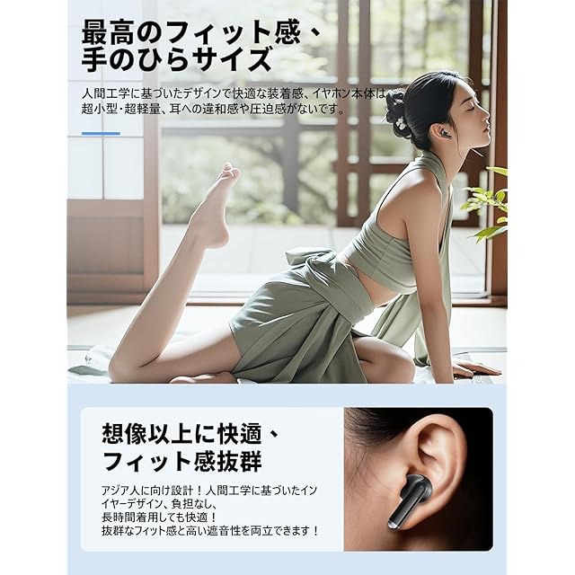 【想像以上に快適&フィット感抜群】:人間工学に基づいたデザインで快適な装着感、イヤホン本体は超小型・超軽量、耳への違和感や圧迫感がない、長時間の使用でも落ちない快適で安定感のある装着ができ、耳が疲れないなどの特徴があります。このブルートゥースイヤホンは外観から、バックやポケットなどに収まりやすい小柄なサイズとなっていますので、持ち運びが大変便利になります。