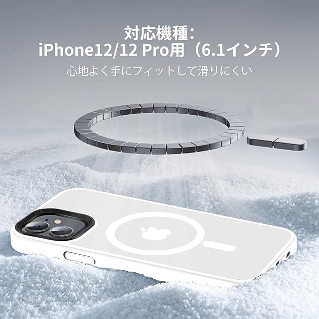 商品名:【米軍規格・MagSafe対応】Gtsoho iPhone 12 / 12 Pro 用 ケース 半透明 マグネット搭載 耐衝撃 マット感 黄ばみなし ストラップホール付き マグセーフ対応 ワイアレス充電対応 しろい