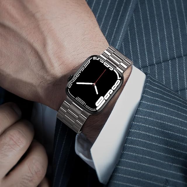 【保護ケース付き】PC素材と硬度強化ガラスで作成された 一体型 apple watch カバー。360度で腕時計を落下衝撃や傷から全面的に保護。バンド横3列になったコマを縦に繋ぎ合わせたブレスレットで、高い堅牢性を持っています。ほとんどの時計メーカーで採用されている3コマモデルで、金属ブレスとしては一番オーソドックスなタイプになります。
