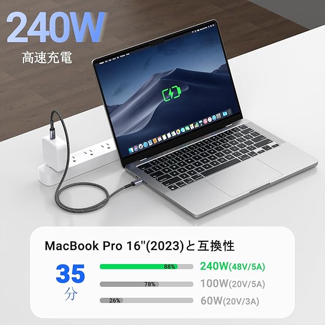 商品名:USB CからUSB Cケーブル80 Gbps 1m 2本、SUMPK 240 W USB 4ケーブル、第4世代データ、Thunderbolt 5対応16 K HDRビデオモニタ、iPhone 16 Pro Max、iPhone 15/15 Plus、MacBook、iPad、eGPU