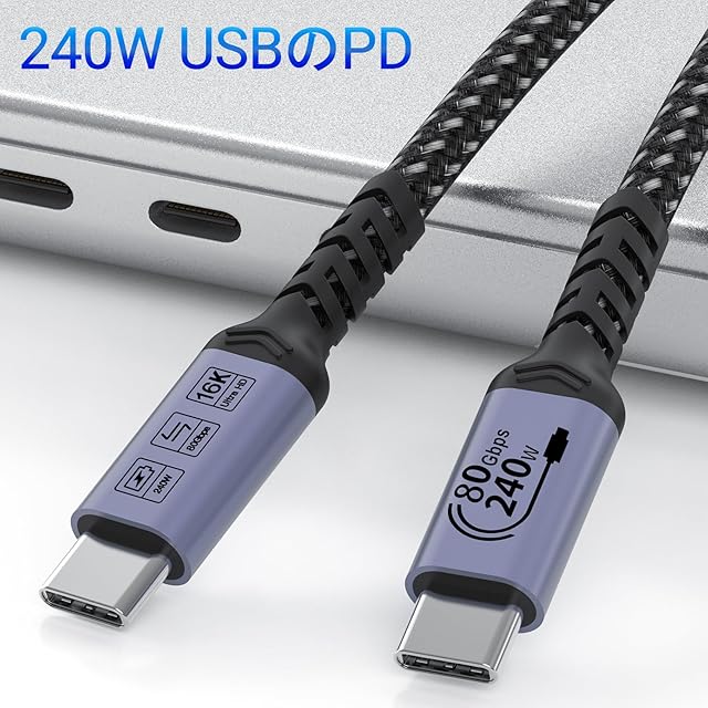 【幅広い互換性】:USB 4ケーブル互換霹靂5、霹靂4、霹靂3電子製品、iPhone 16/16 Pro/16 Plus/16 Pro Max、iPhone 15/15 Plus/15 Pro/Max、MacBook Pro、iPad Pro、サムスンGalaxy S 23、Pixel、LG、M 1、M 2、M 3、SSD、Type-Cノートパソコン、PC、スピーカー、タブレット、パソコン、携帯電話、携帯電話、ビデオゲーム機、ディスプレイ、ハブ、拡張ドック、SSD、ハードディスク、Powerpoint、eGPUデバイス、その他のUSB-Cプラグデバイス
