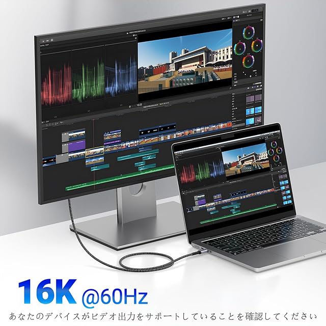 [16 Kビデオ出力]:ディスプレイケーブルはDP 2.1プロトコルと単一16K@30HzまたはUHD解像度を持つ2つの6 K/8 K@60 Hzモニタまたは3つの4 K 120 Hzモニタを同時に使用する(注:デバイスにDP AltモードをサポートするUSB Cポートがあることを確認してください)