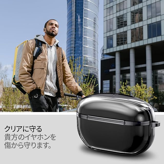 商品名:Spigen Sony WF-1000XM5 ケース 透明 クリア ワイヤレス充電 対応 リング カラビナ付き スリム 軽量 耐衝撃 すり傷防止 ウルトラ・ハイブリッド ACS07102 (ジェット・ブラック)