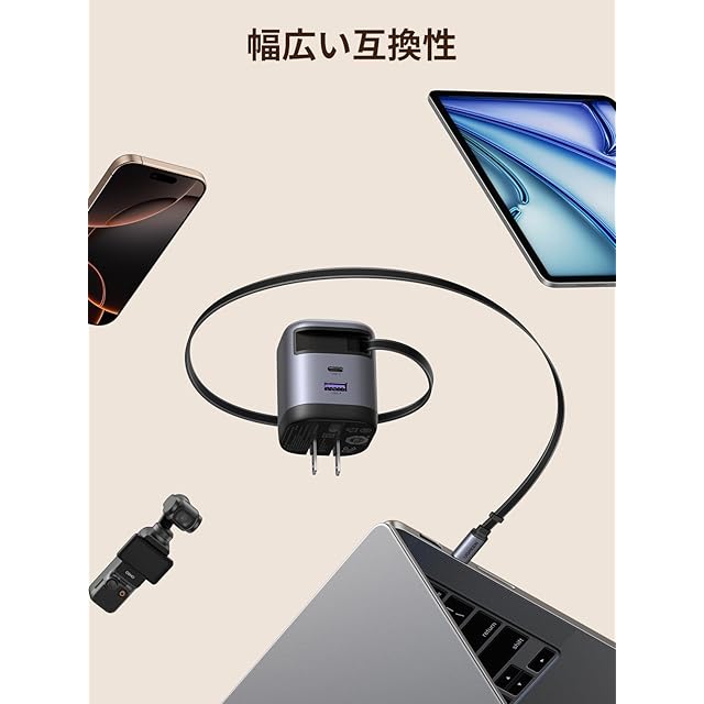 ▶【旅の充電はこれ一本!手軽に持ち運び】旅行にぴったりの小ささで、かばんの隅にスッキリ収納。GaNInfinity テクノロジー搭載で、驚異の最大95%電力変換効率を実現! ムダな発熱を抑え、安全かつ効率的に高速充電。優れた放熱性能で長時間使用も安心のコンパクト設計。旅先でもサッと出して充電。いつでもどこでも、デバイスをフル充電!サイズ:53*50.4*50.9MM